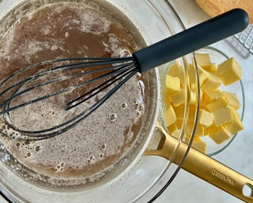 2. Divide the batter evenly between the two GreenPan Reserve Bakeware 9-inch round cake pans. Smooth the tops with a spatula to ensure more level cakes. Bake for 18 to 24 minutes, or until a toothpick inserted into the center comes out clean. Remove from the oven and transfer to a wire cooling rack. Let the cakes cool in their pans for about 10 minutes before carefully turning them out directly onto the wire rack to cool completely.
