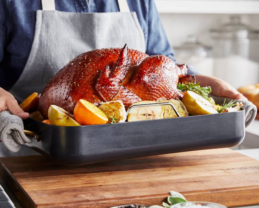These easy-to-clean pans take your roasts to the next level. But don’t think of them as a once-a-year wonder—these pans are great for veggies, lasagna, and thousands of other family-sized meals.