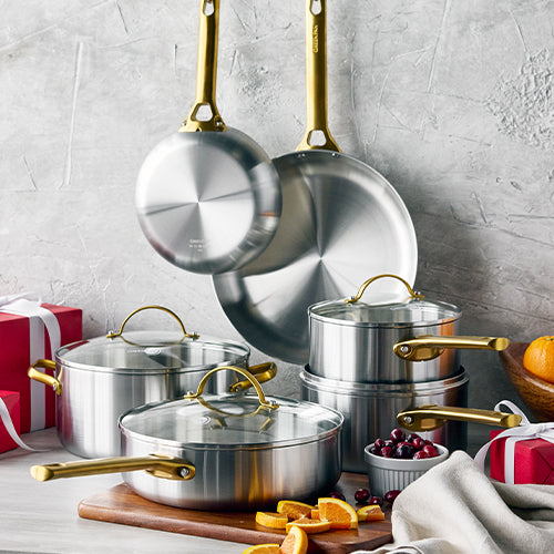 Some of our collections are made to be beaten up, some stack effortlessly, and others deliver the latest in cooking technology. All, however, will make cooking easier and healthier.