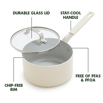 Our signature healthy ceramic nonstick coating is free of PFAS, PFOA, lead, and cadmium
