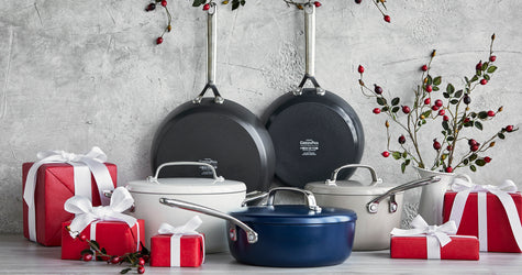 This do-it-all set brings a sleek style to any kitchen with no compromise in performance. Each piece is constructed from heavy-gauge aluminum and coated in our Infinite8 ceramic nonstick. Plus, the induction ready design delivers quick and even heating on any stovetop.
