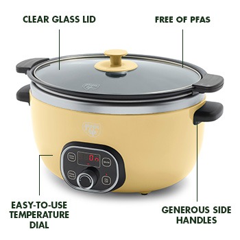 This slow cooker features our healthy ceramic nonstick coating for effortless cleanup and fantastic performance.