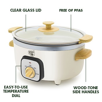 This 3.5-quart slow cooker makes flavorful, worry-free meals easy. The removable pot is stovetop and oven safe up to 400˚F, and our PFAS-free ceramic nonstick ensures easy cleanup. Compact, versatile, and simple to use—perfect for everyday cooking.