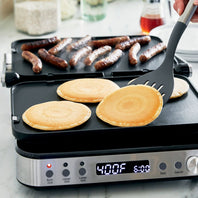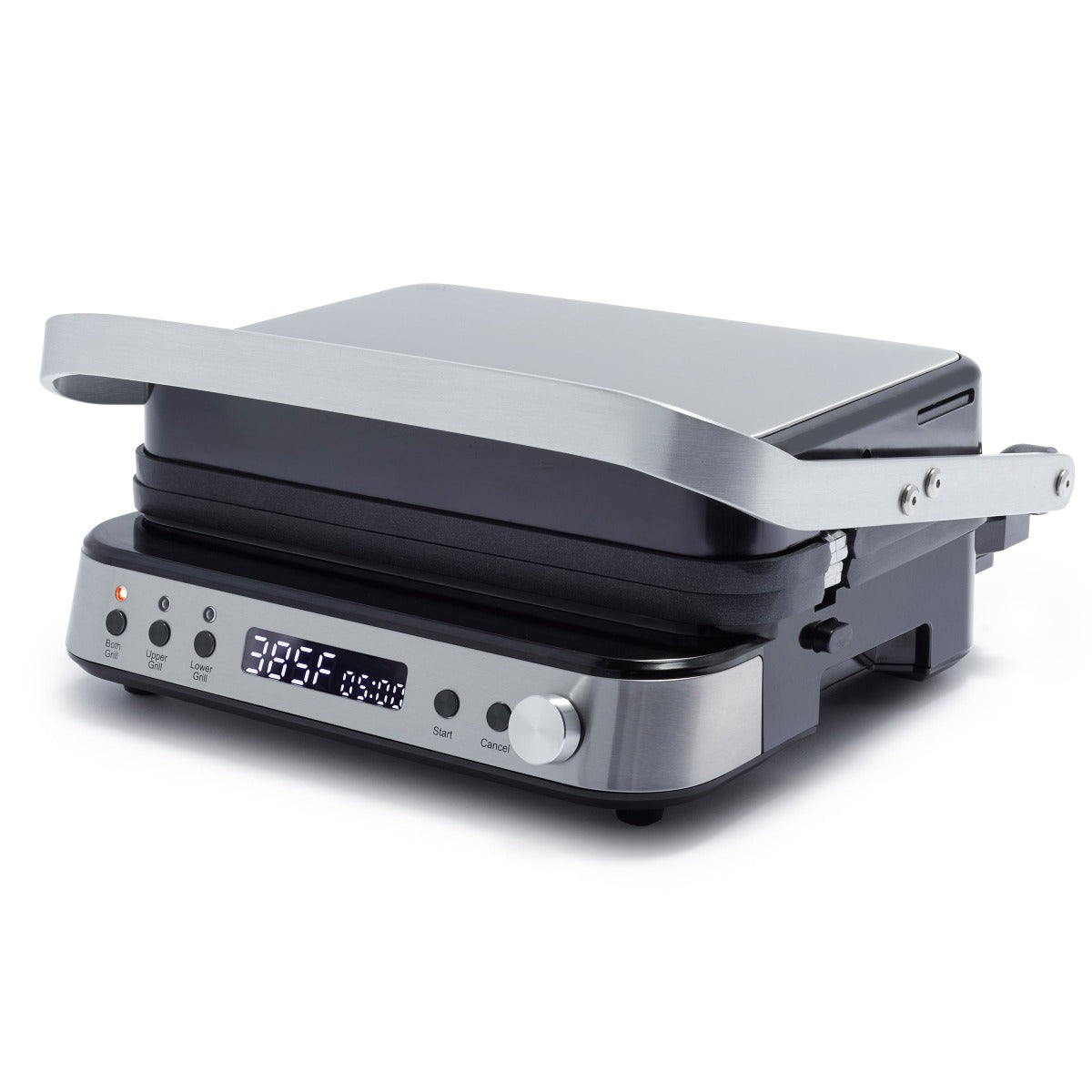 Find the right mode for your meal: contact grill, contact griddle, panini press, mixed grill/griddle, open grill, and open griddle