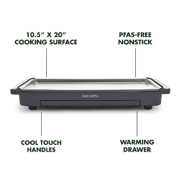Whether you’re crafting a family-sized brunch or need room to make burgers for everyone, this spacious 10.5" x 20" griddle ensures all your food will be ready at the same time with the handy warming drawer.