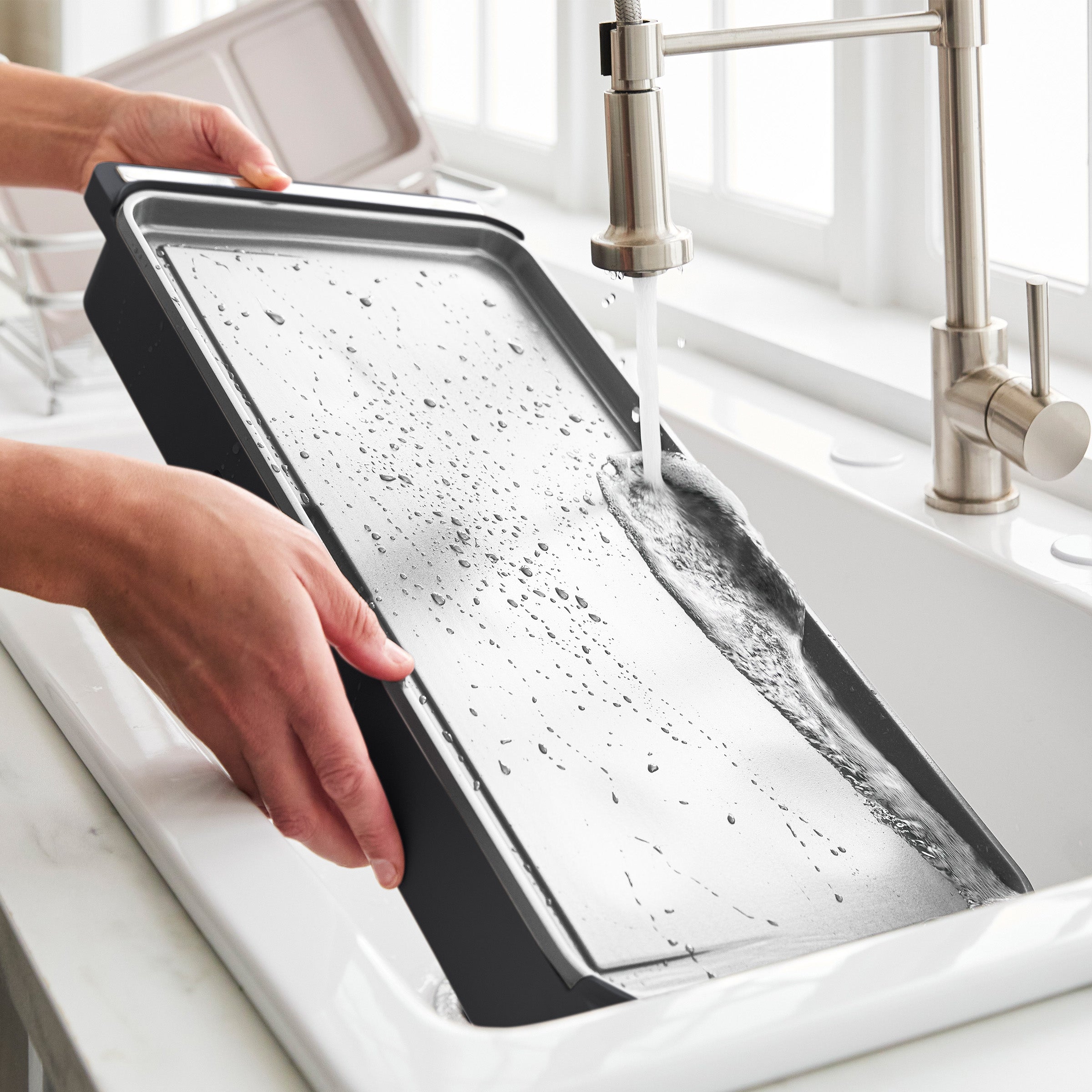 Remove drip tray and empty contents. Wash griddle, warming drawer, and drip try in soapy water; rinse and dry thoroughly with a towel. Hand washing is recommended, but the unit is dishwasher safe.