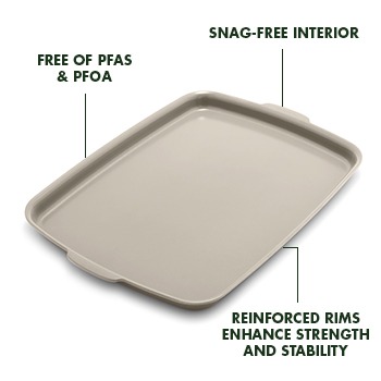 A remarkable ceramic nonstick coating, a unique heavyweight gauge, and one-piece design create the single best way to cook in the oven.