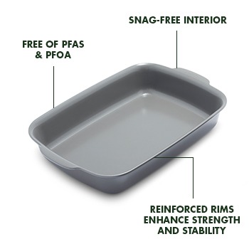 A remarkable ceramic nonstick coating, a unique heavyweight gauge, and one-piece design create the single best way to cook in the oven.