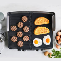 A full griddle, a full grill, or a versatile mix—whatever your meal demands, the XL Smoke-Less Grill & Griddle will make it quick and easy