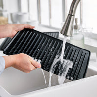 Plates and drip tray are dishwasher safe. Wipe the base unit and splash guard with a damp cloth.
