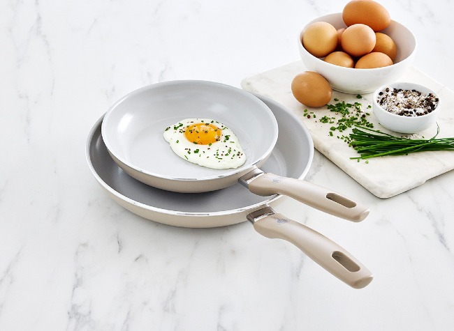 As the inventors of ceramic nonstick, we’re proud of the things we don’t put in our pans. Our Thermolon™ coating won’t release toxic fumes when overheated and creates 60% less CO2 than traditional nonstick during the curing phase. It lasts longer, performs better, and it makes every meal healthier. Healthy cooking starts with GreenPan.