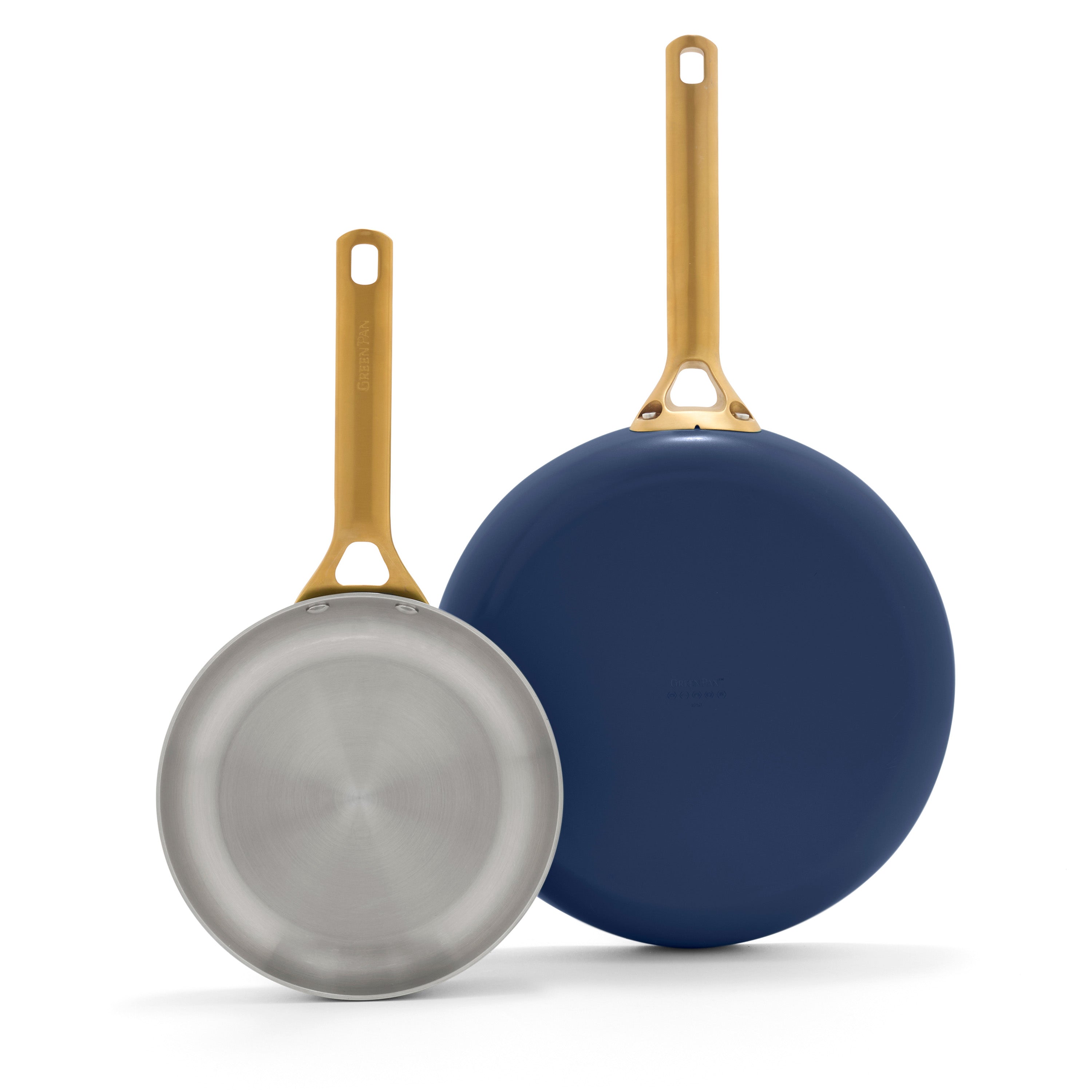 Showstopping style meets everyday performance in this versatile frypan duo. Tri-ply stainless steel with an aluminum core delivers fast, even heating for searing, browning, and sautéing, while gold-tone handles and a bold exterior bring sophistication to any space.