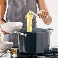 Crafted from hard anodized aluminum for maximum strength and scratch resistance, this spacious 8-quart stockpot has plenty of room for family-sized stews, seafood boils, and so much more.