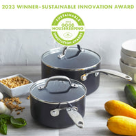 Valencia Pro Ceramic Nonstick 1.5-Quart and 3-Quart Saucepan Set with Lids | Gray