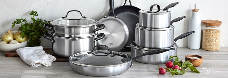 Architectural lines and dramatic contrasts make this designer-approved collection a gorgeous way to inspire the aesthetically minded cook. The cutting-edge coating, matte black handles, and stay-stainless steel exterior make sure your style has plenty of substance.