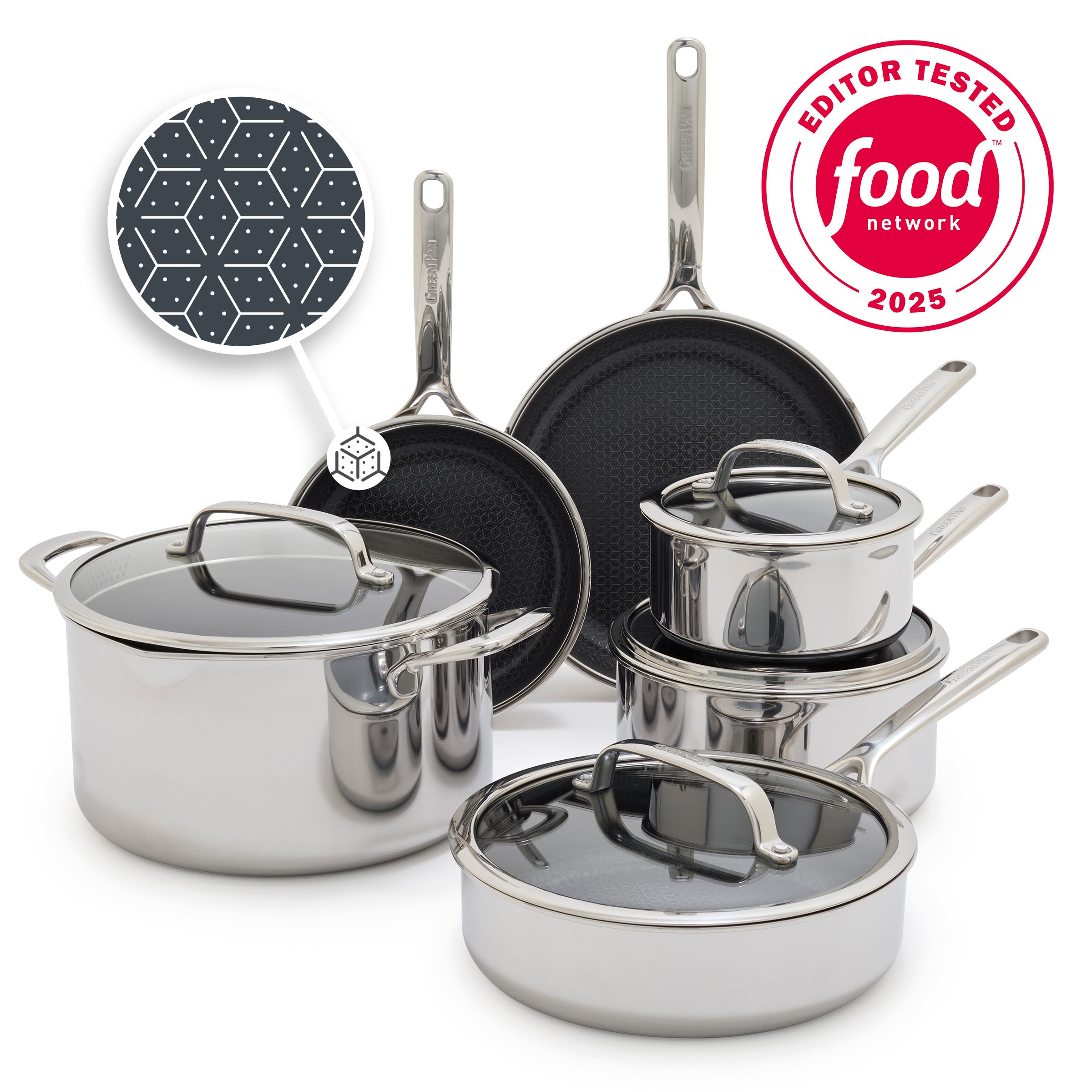 Why You'll Love It | Our award-winning and bestselling set, Valencia Pro is crafted from hard anodized aluminum for maximum strength and scratch resistance while the Magneto™ base delivers fantastic performance on any stovetop. | A multi-layered fusion of texture and PFAS-free nonstick, Spectra is the world’s best hybrid cookware and delivers incredible searing, effortless release, and maximum durability. | Reserve Pro is a dynamic refresh of a GreenPan bestseller. Available in more fresh, modern colors than ever, Reserve Pro’s latest innovations make this gorgeous collection a brilliant way to add color to any recipe. | This collection’s brilliant mirror-finished tri-ply bodies deliver remarkable performance on all stovetops, turning this statement-making redesign of our bestselling and award-winning set into a stunning kitchen refresh. | GP5 Stainless Steel is in a class all its own. These all-new 5-ply bodies are optimized for remarkable performance and our Infinite8 ceramic nonstick coating is the most advanced ceramic nonstick ever made. | GP5 incorporates 18 years of cook-centric innovations in one cutting edge collection. Oil stays where you put it, the 5mm thick bodies are the thickest we’ve ever made, and it features Infinite8, the single most advanced ceramic nonstick coating on the market. | Finished in bold hues that elevate every space, Nova includes all you need to cook with confidence. Our Thermolon™ coating lasts longer, performs better, and it makes every meal healthier. Healthy cooking starts with GreenPan. |