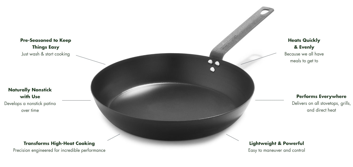 Carbon steel delivers everywhere from the stovetop to the grill so it's the perfect go-to collection for anywhere and everywhere.