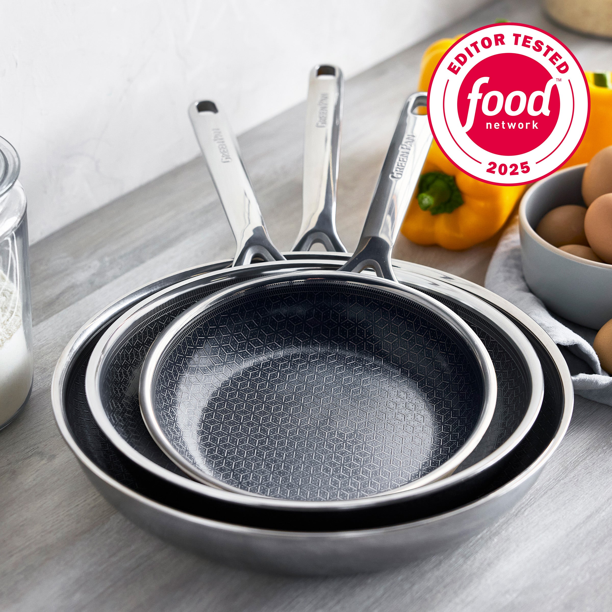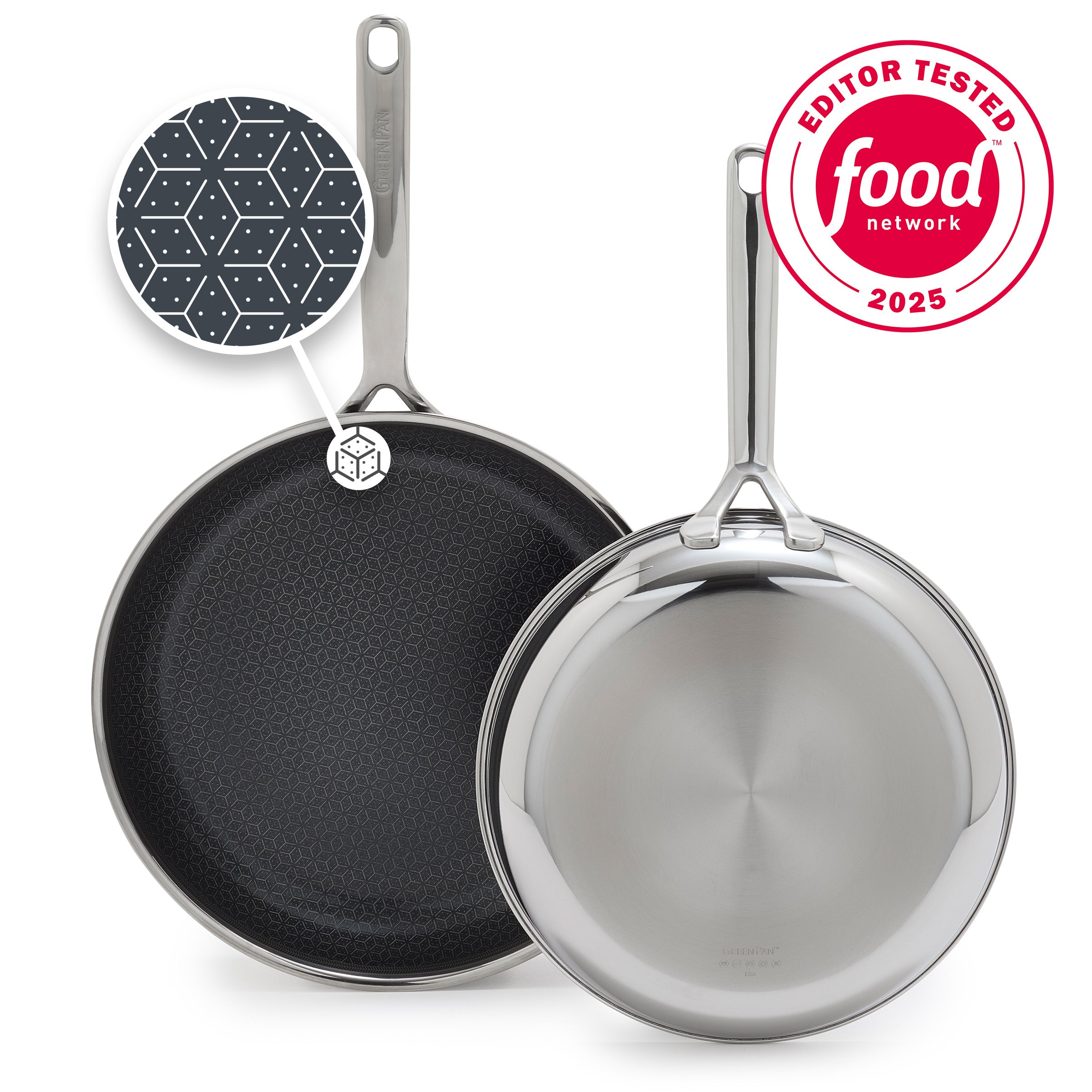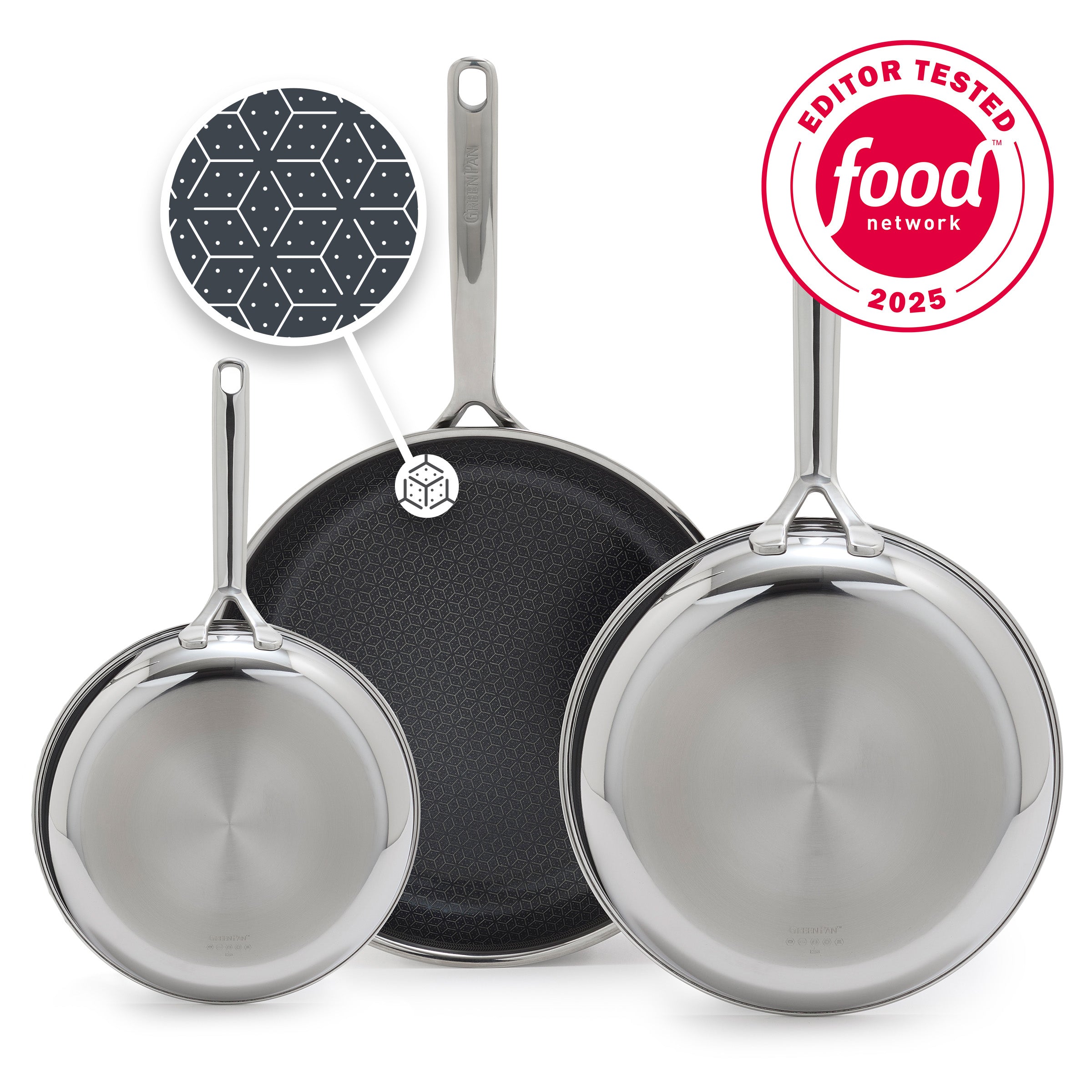 "GreenPan's newest hybrid cookware line combines the brand's top-rated ceramic coating with the high-heat searing power of stainless steel, delivering nonstick convenience without sacrificing performance." - Food Network