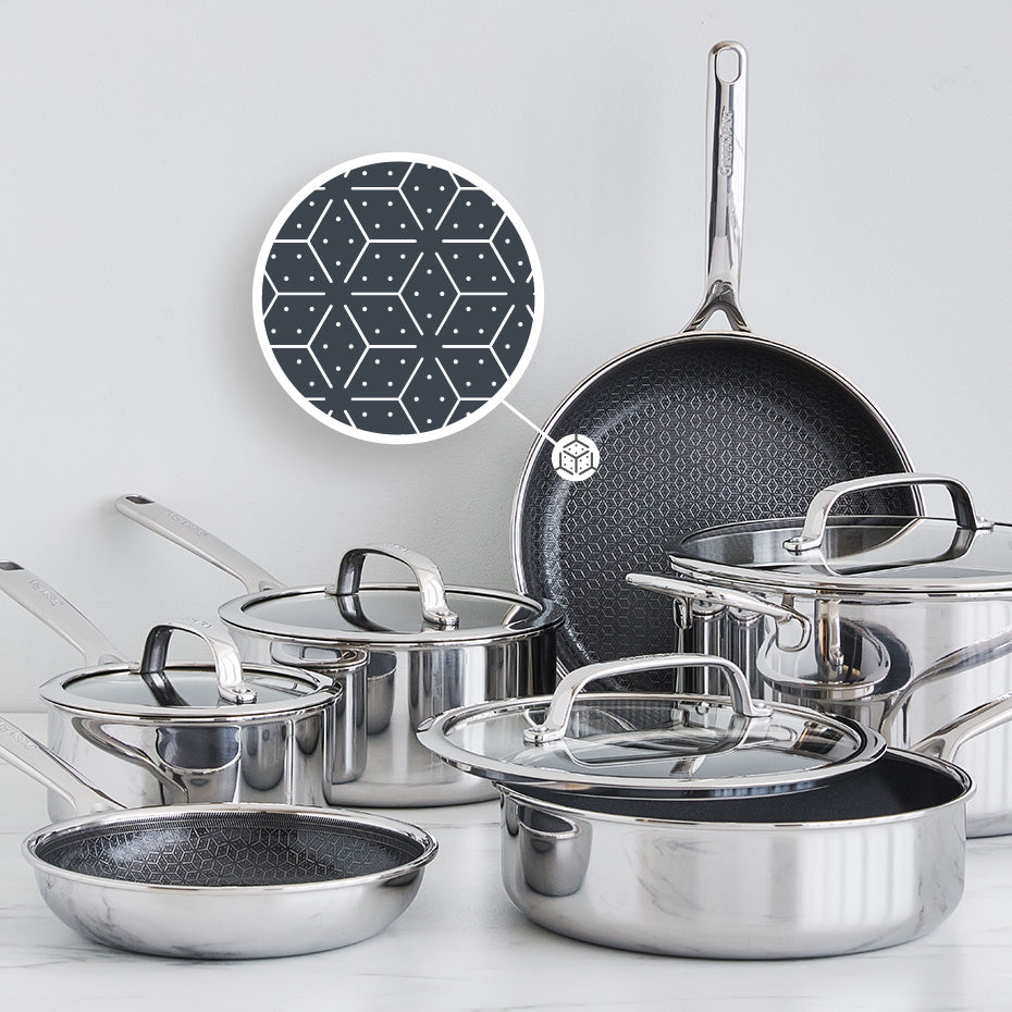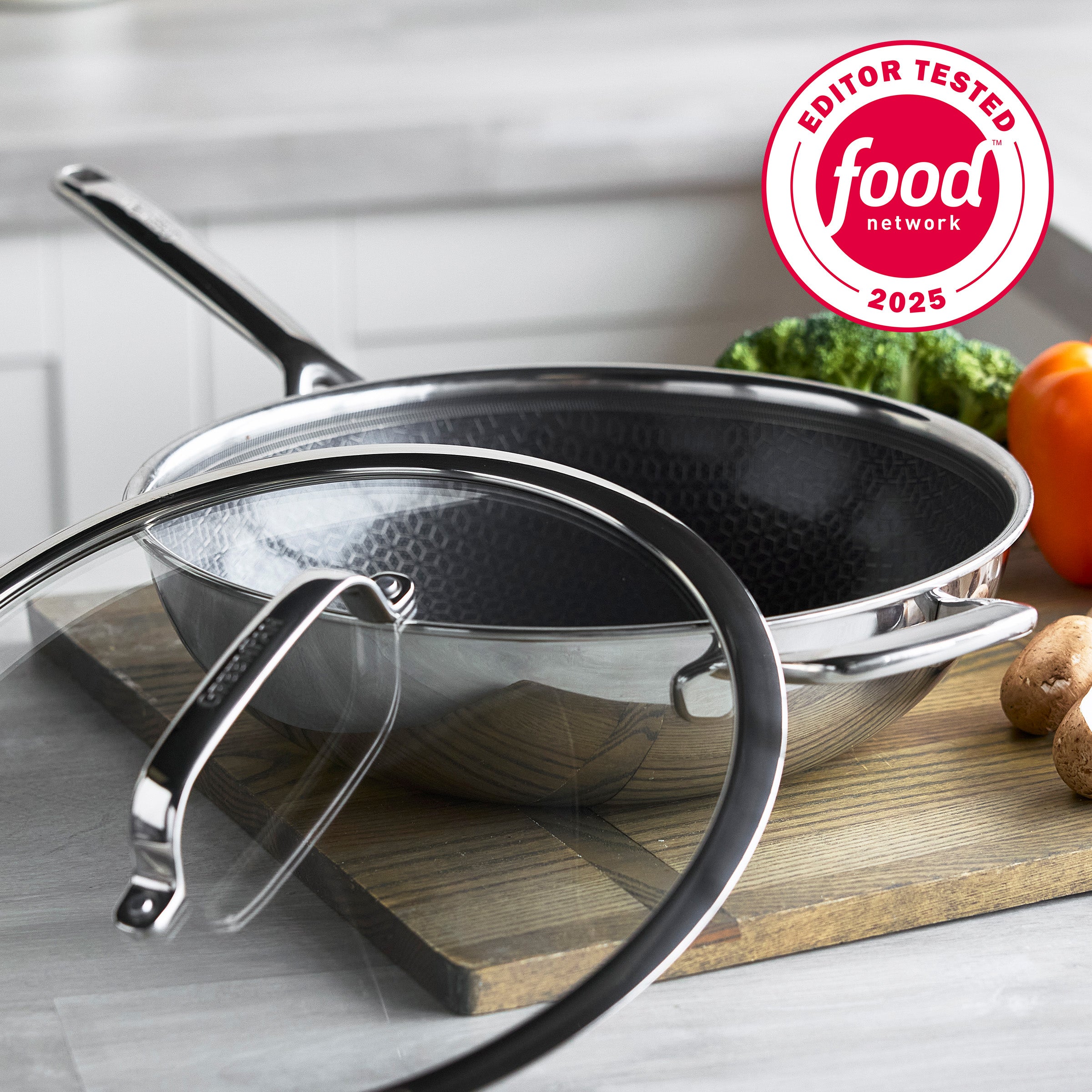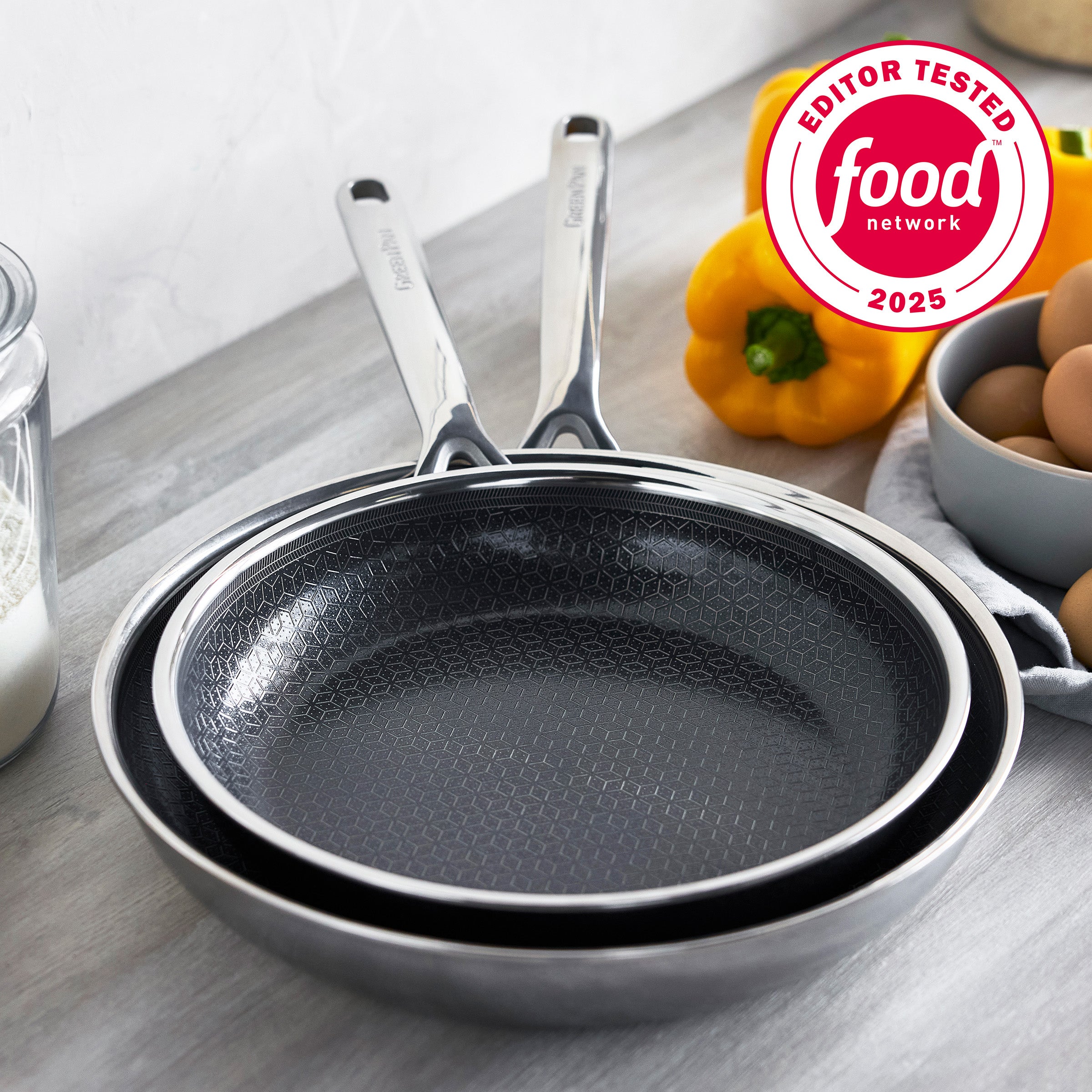 "GreenPan's newest hybrid cookware line combines the brand's top-rated ceramic coating with the high-heat searing power of stainless steel, delivering nonstick convenience without sacrificing performance." - Food Network
