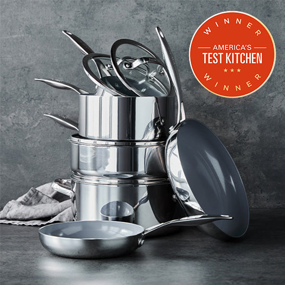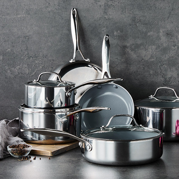 Packed with thoughtful details that make cooking better for everyone, our Valencia Pro has revolutionized PFAS-free nonstick and this latest addition to the family adds the power of stainless steel to the recipe. No matter which collection you choose, these sets are kitchen icons for a reason.