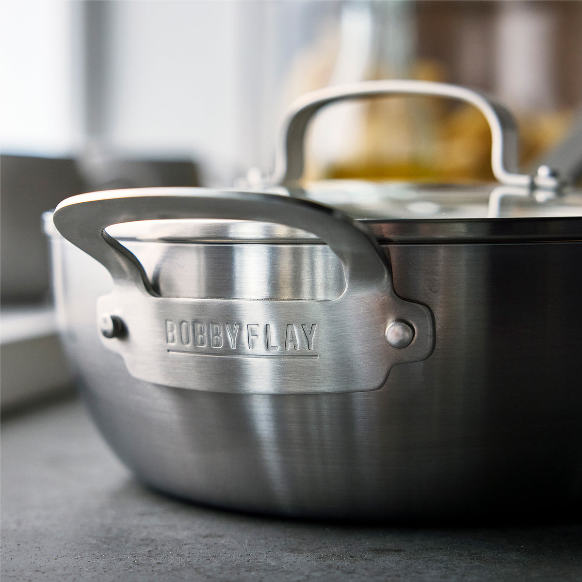 Bobby Flay uncoated stainless steel cookware is safe for use with all utensils