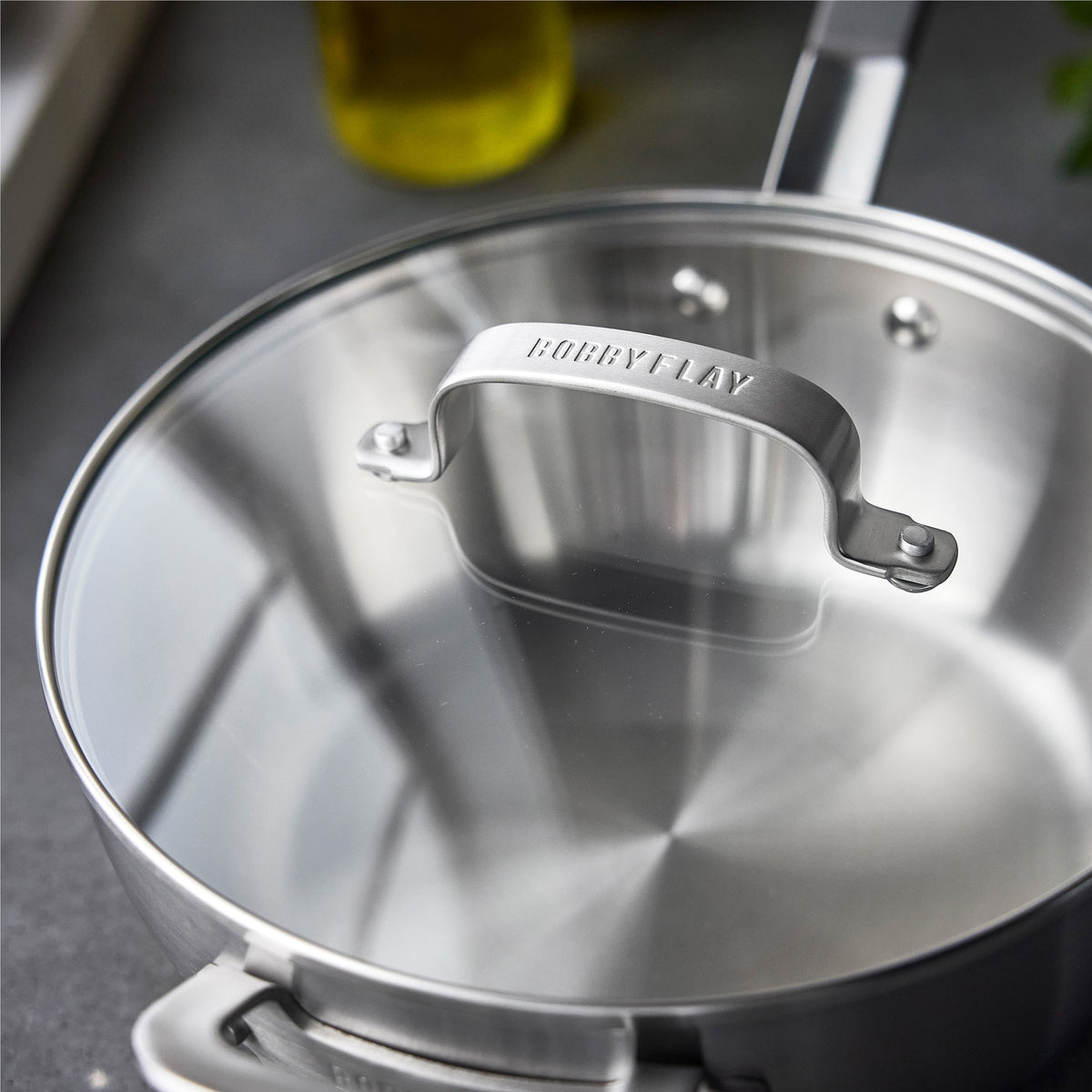 This uncoated stainless steel chef's pan is specially designed to deliver restaurant-quality results at home. Crafted from professional grade tri-ply stainless steel, this pan features a powerful aluminum core for incredible durability, faster heating, and no hot spots.