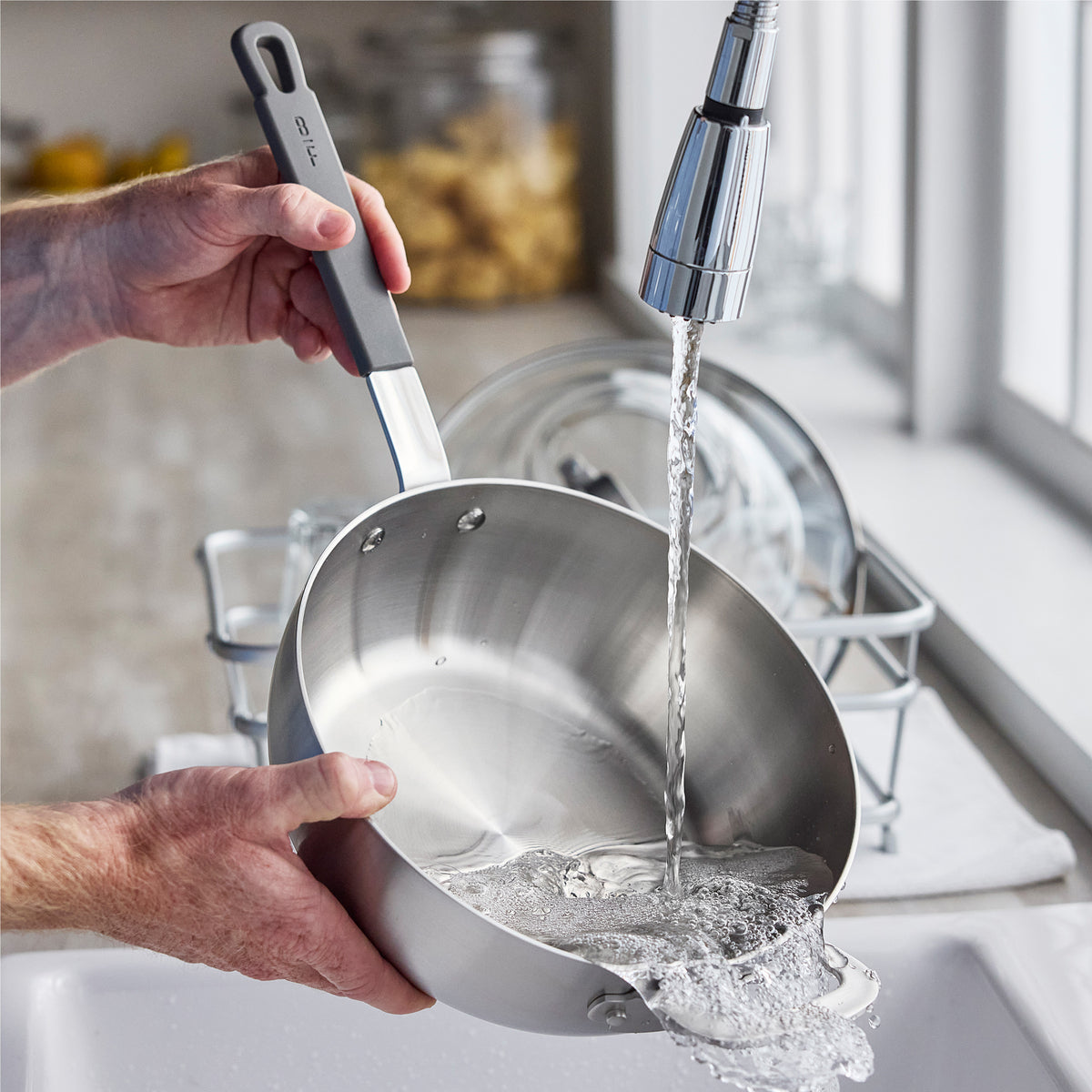 High-quality stainless layers with a powerful aluminum core deliver restaurant-quality results at home on all stovetops, including induction.