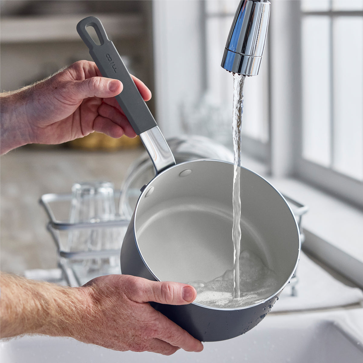 Inspired by restaurant kitchens, this pan has a long chef handle with a stay-cool silicone grip that gives you total control and comfort