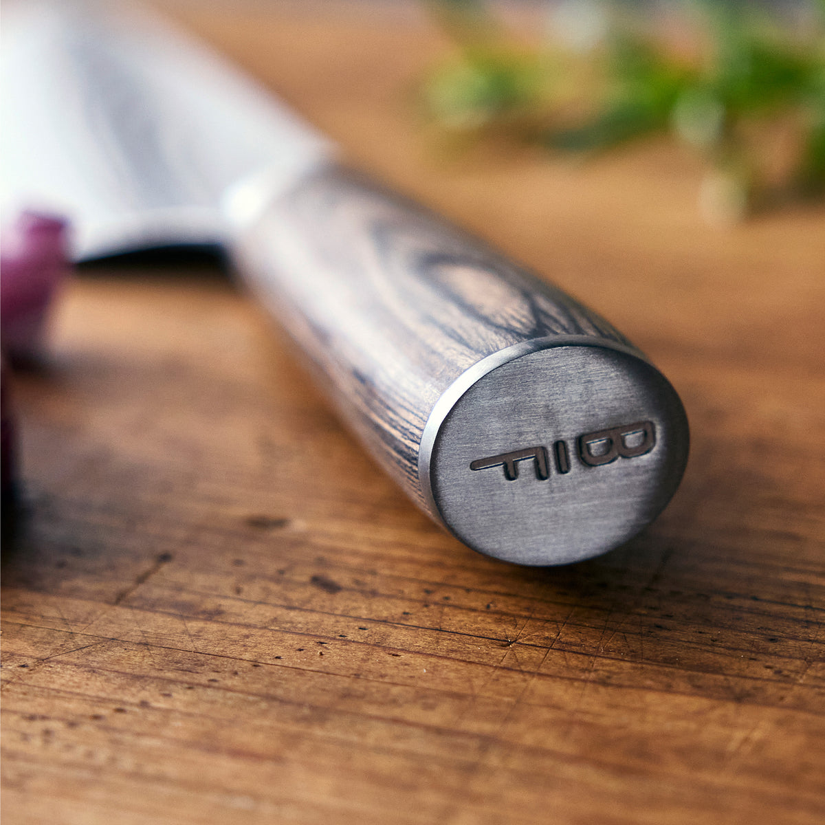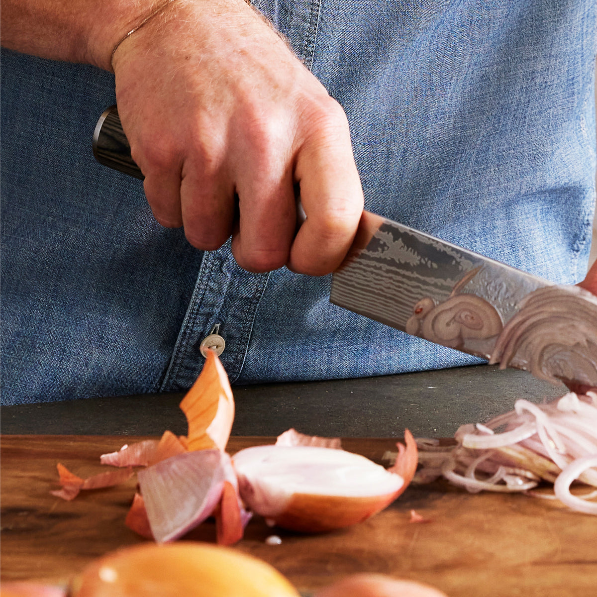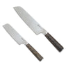 Lightweight and balanced, this Santoku set is specially designed for daily use. The two sizes make it easy to have the right knife handy and the hand-sharpened edges will make slicing simple.