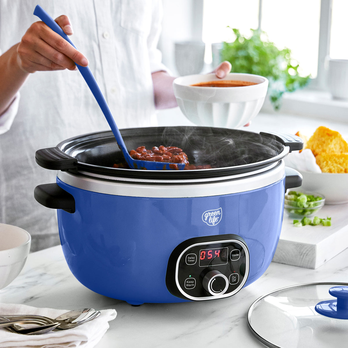 This slow cooker features our healthy ceramic nonstick coating for effortless cleanup and fantastic performance.