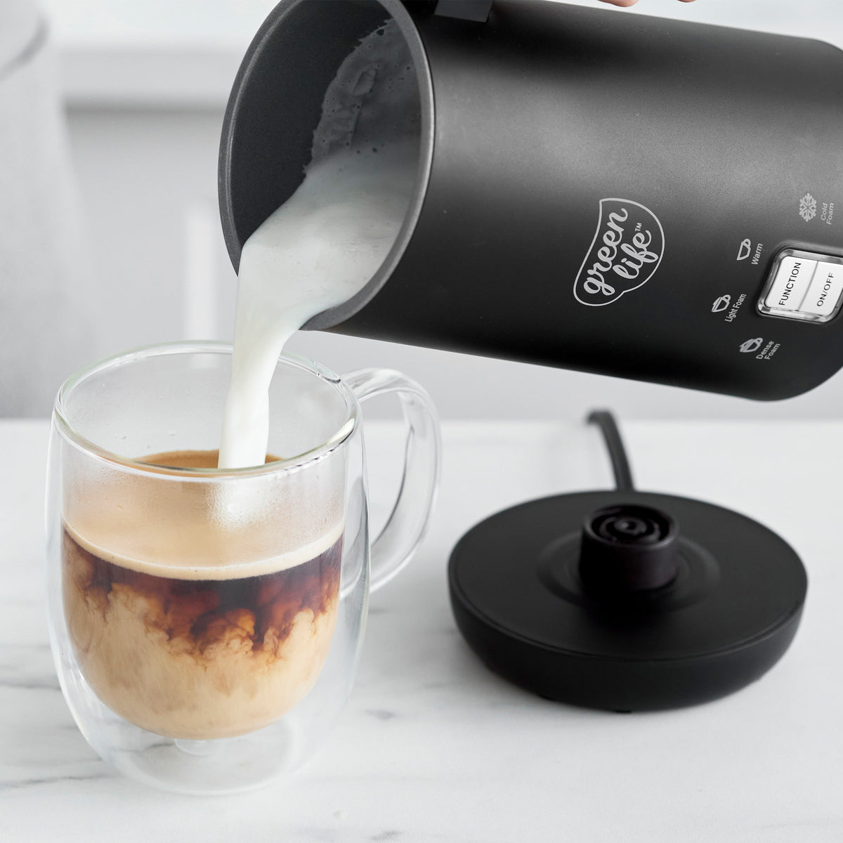 Bring all your java dreams to life with the GreenLife Milk Frother. This convenient device uses a whisking mechanism to aerate the milk, giving it a light and fluffy texture. Simply add your milk, choose your desired setting, and let the frother do the work.