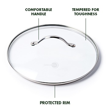 These universal tempered glass lids feature tough stainless steel top handles and stainless steel rims. Designed to retain heat and prevent splashing, these lids fit all GreenPan collections.