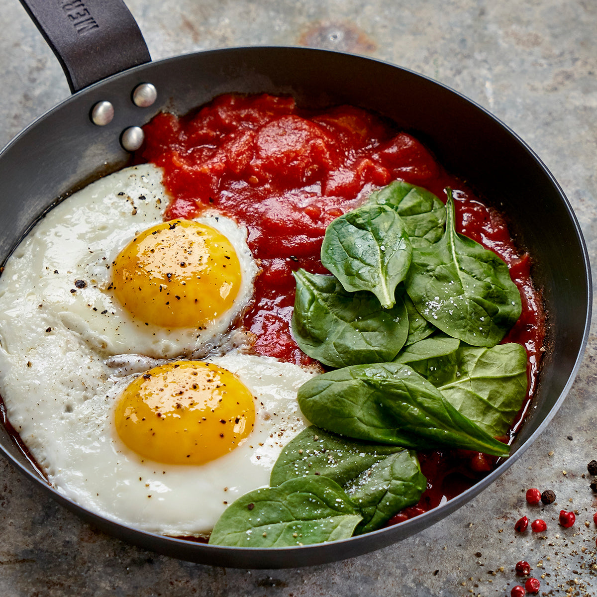 Lightweight and quick heating carbon steel delivers cast iron performance without the weight or the wait.