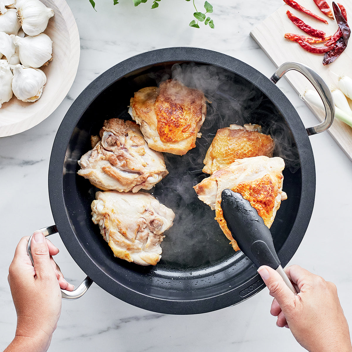 Designed to take on any kitchen task, this versatile skillet delivers quick and even heating for high-heat searing, stir-fry, rice, steaming, soup and so much more.