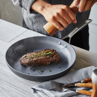 Thermolon™, our ceramic nonstick, starts with a sand derivative, which we turn into a solution and spray onto the pan without the need for plastics, glues, and additives. We’ve cut out the toxins—PFAS—so you can cook without worrying about what’s in your pan. The absence of forever chemicals in our nonstick means they won’t release toxic fumes, even if you accidentally overheat your pan. Thermolon™ can withstand temperatures up to 850°F/450°C, something that would not be safe to do with some conventional nonstick frypans. Thermolon™ has been certified by third party testing labs as conforming to international regular food contact standards set by the US FDA (USA Food & Drug Administration) and by EU regulators.
