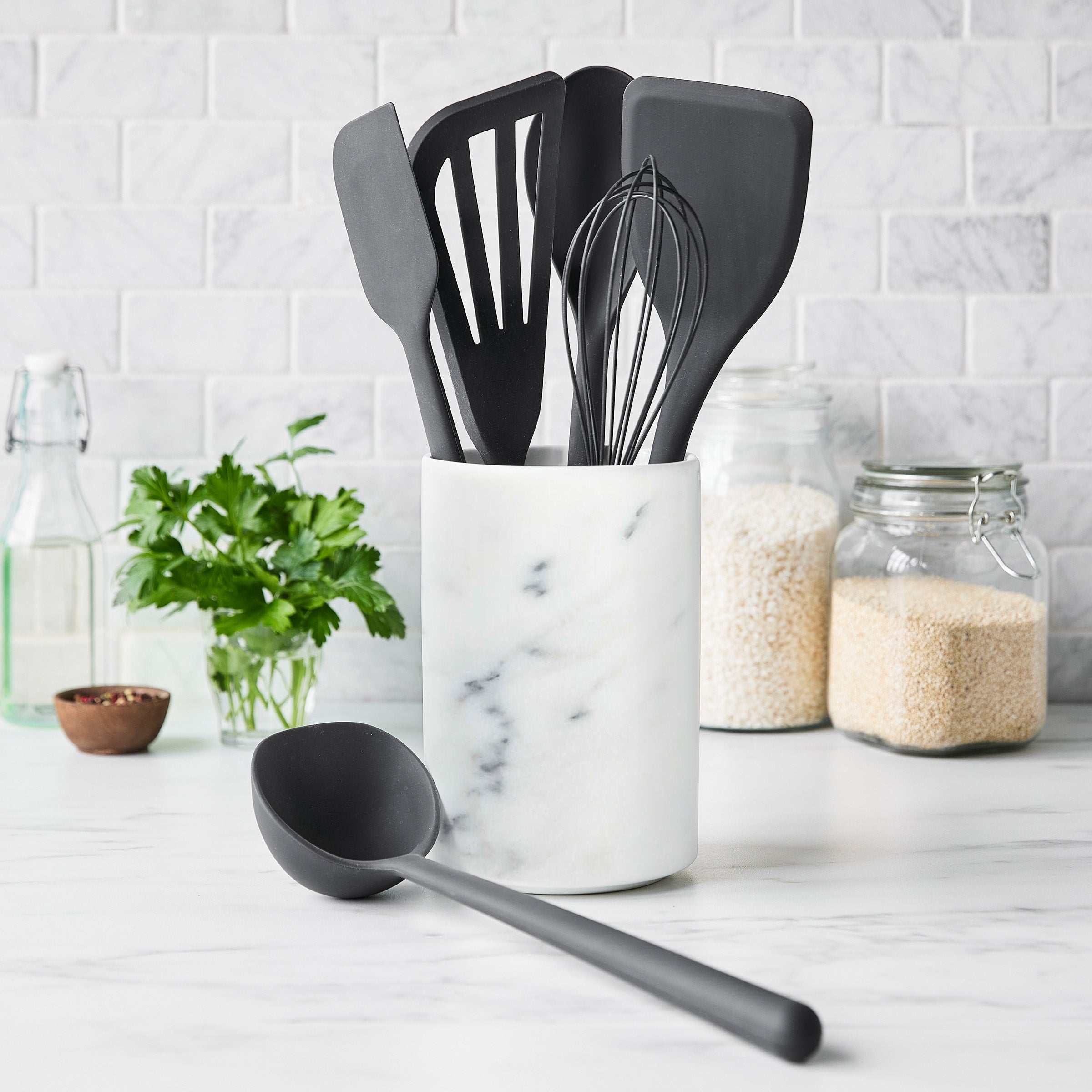 Our silicone tools are optimized for control and performance, plus the striking ceramic crock adds a pop of color to any countertop while keeping your tools at the ready.