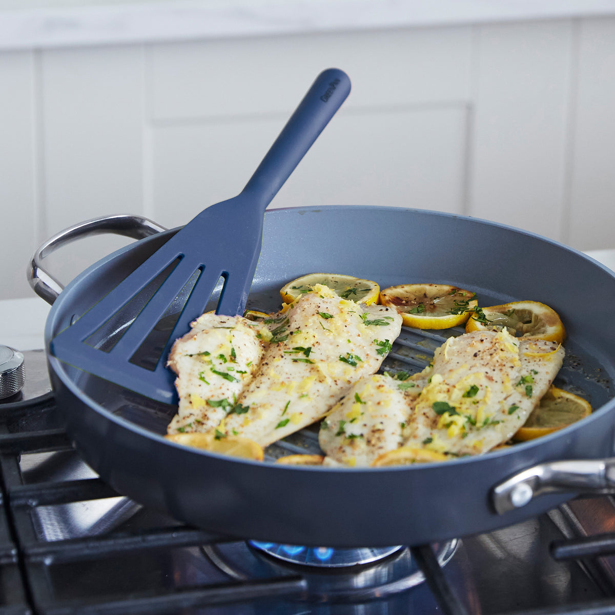 Designed to cover a huge array of tasks, this turner has a sturdy metal core for incredible strength and a heat-resistant silicone exterior that makes it perfect for use alongside ceramic nonstick pans.