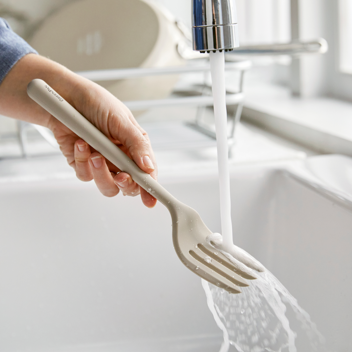 This fork’s endlessly versatile 10-in-1 design means you can stir, mix, blend, mash, scrape, whisk, lift, scoop, shred, and flip! This multipurpose fork is crafted from heat-resistant silicone, so it’s perfect for use alongside ceramic nonstick pans.