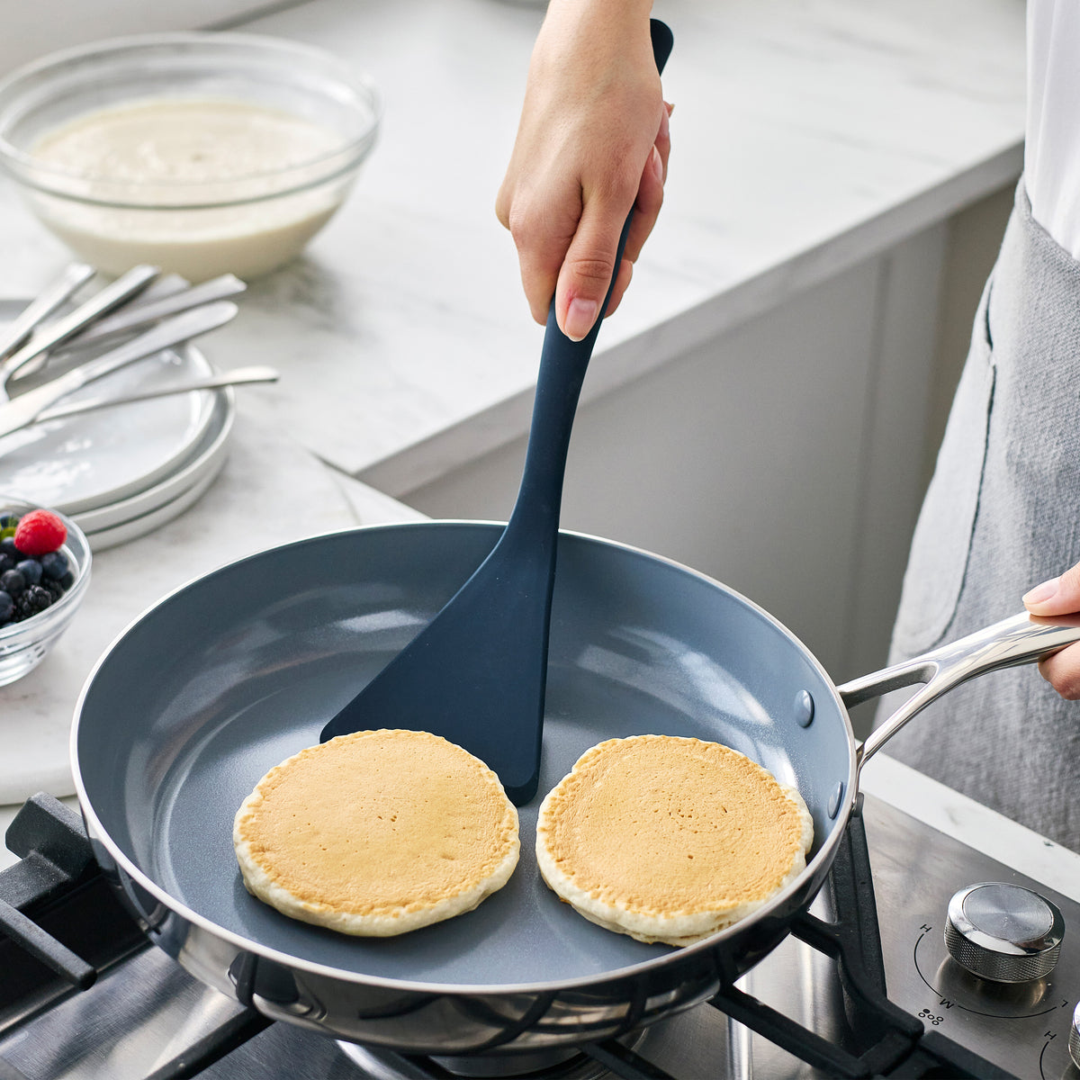 This durable, flexible hero effortlessly flips everything from pancakes to grilled cheese. With its platinum silicone construction and anti-slip grip, you'll stay comfortable and in control no matter the meal.