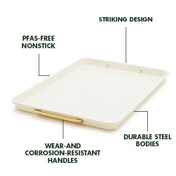 Transform your oven cooking with the resilient Reserve collection. Made from heavy-gauge aluminized steel, these pans feature our PFAS-free nonstick for easy release and healthier meals. Plus, the gold-tone handles are both stylish and wear- and corrosion-resistant.