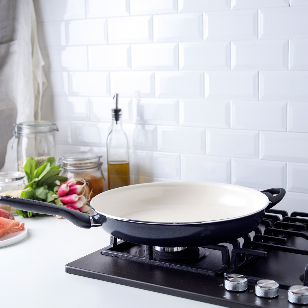 This spacious 13.5" frypan delivers plenty of room for family-sized scrambles, huge veggie sautés, and fried fish for everyone. Featuring a stay-cool grip with a helper handle, this pan keeps you safe so you can transfer with ease.