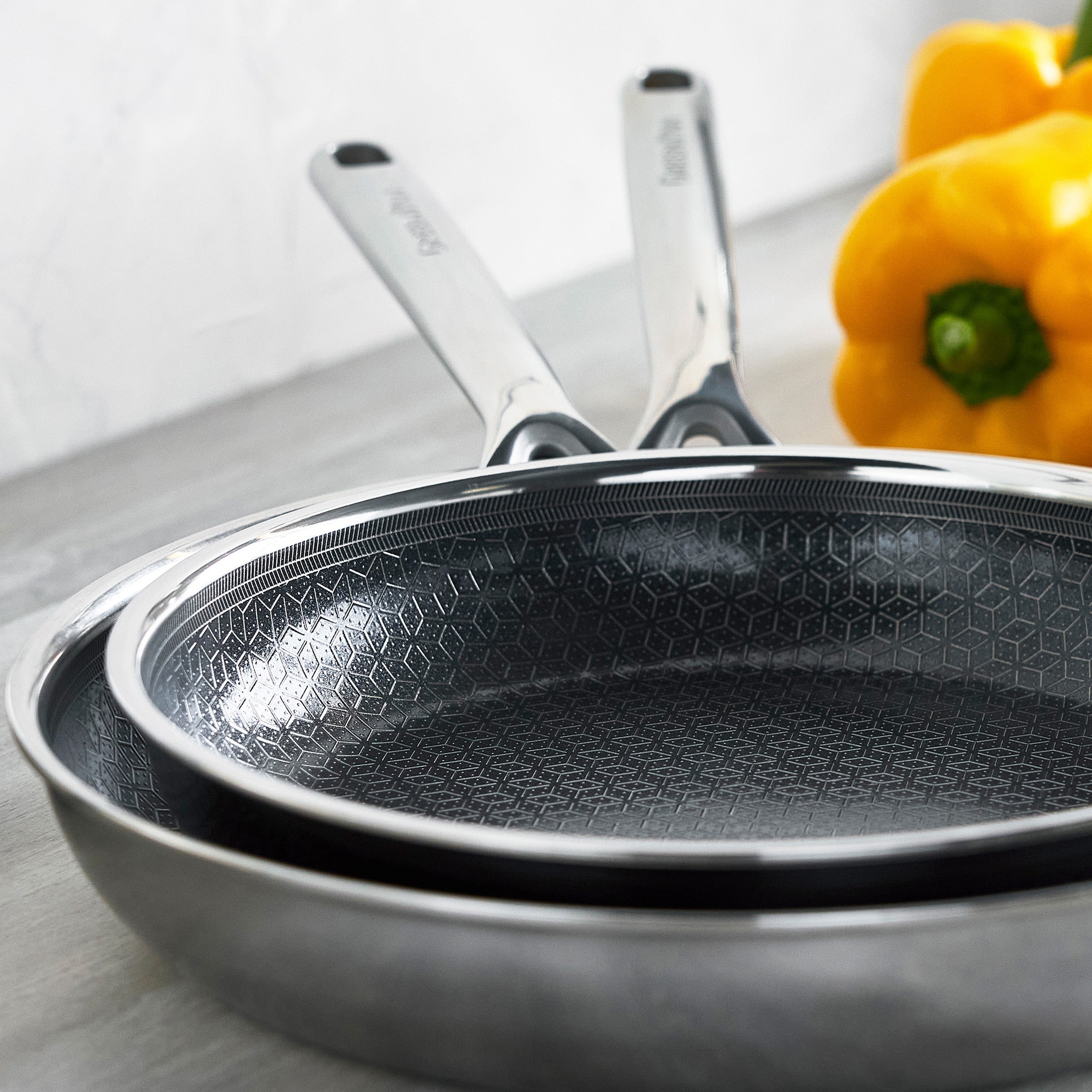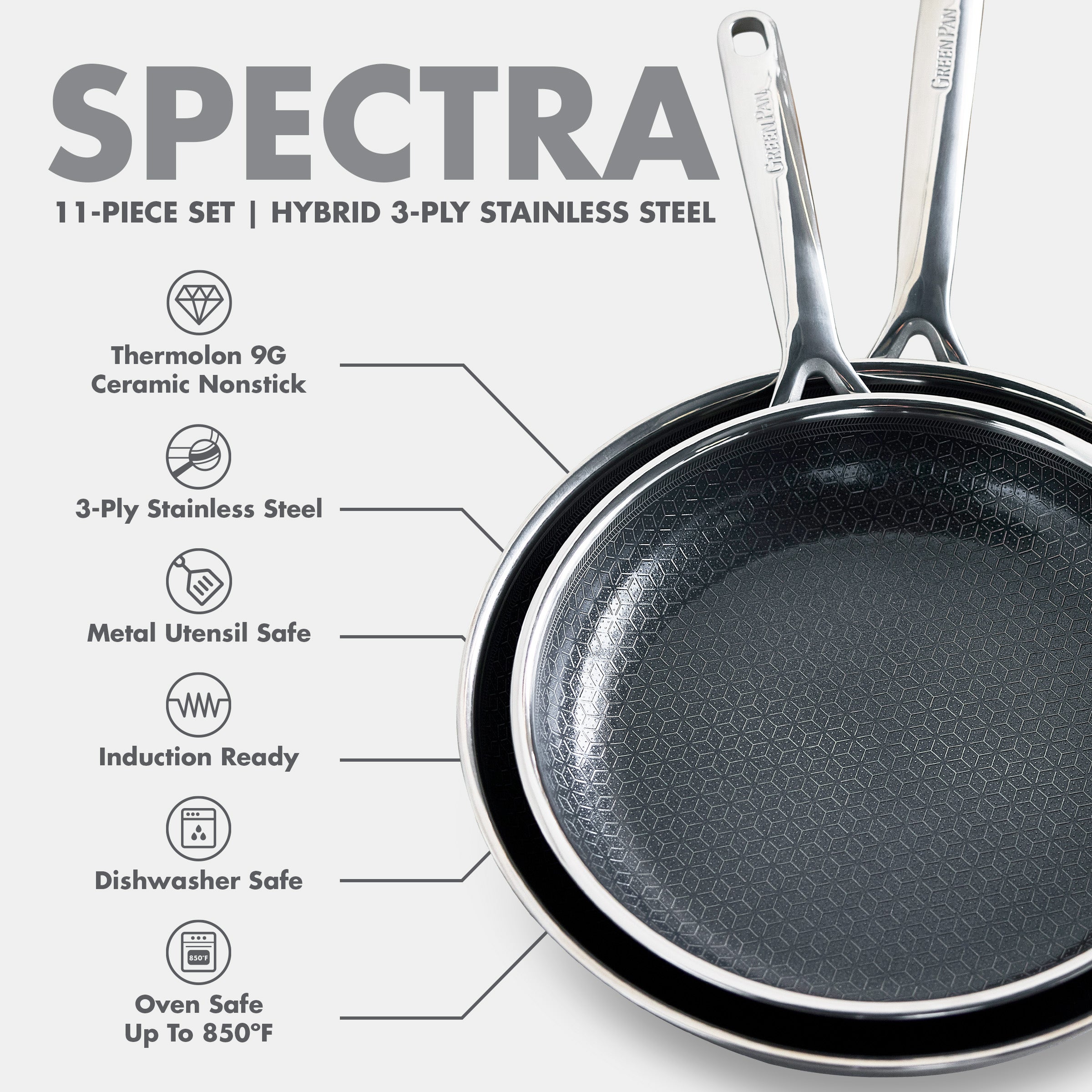 Spectra is the best of hybrid cooking, combining the strength and responsiveness of 3-ply stainless steel with the ease of our best ceramic nonstick. Powered by our innovative Thermobond™ Technology, each pan features a stainless steel etched pattern, a reinforced boost layer, and our signature PFAS-free nonstick for incredible searing, effortless release, and pro-level performance.