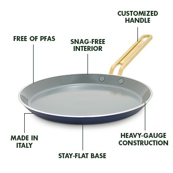 Craft everything from delicate crêpes to personal pizzas, omelets, and more with this Italian-made pan from Stanley Tucci. Beloved by Tucci for its versatility, it pairs refined design with PFAS-free nonstick, delivering exceptional performance on any stovetop, every day.