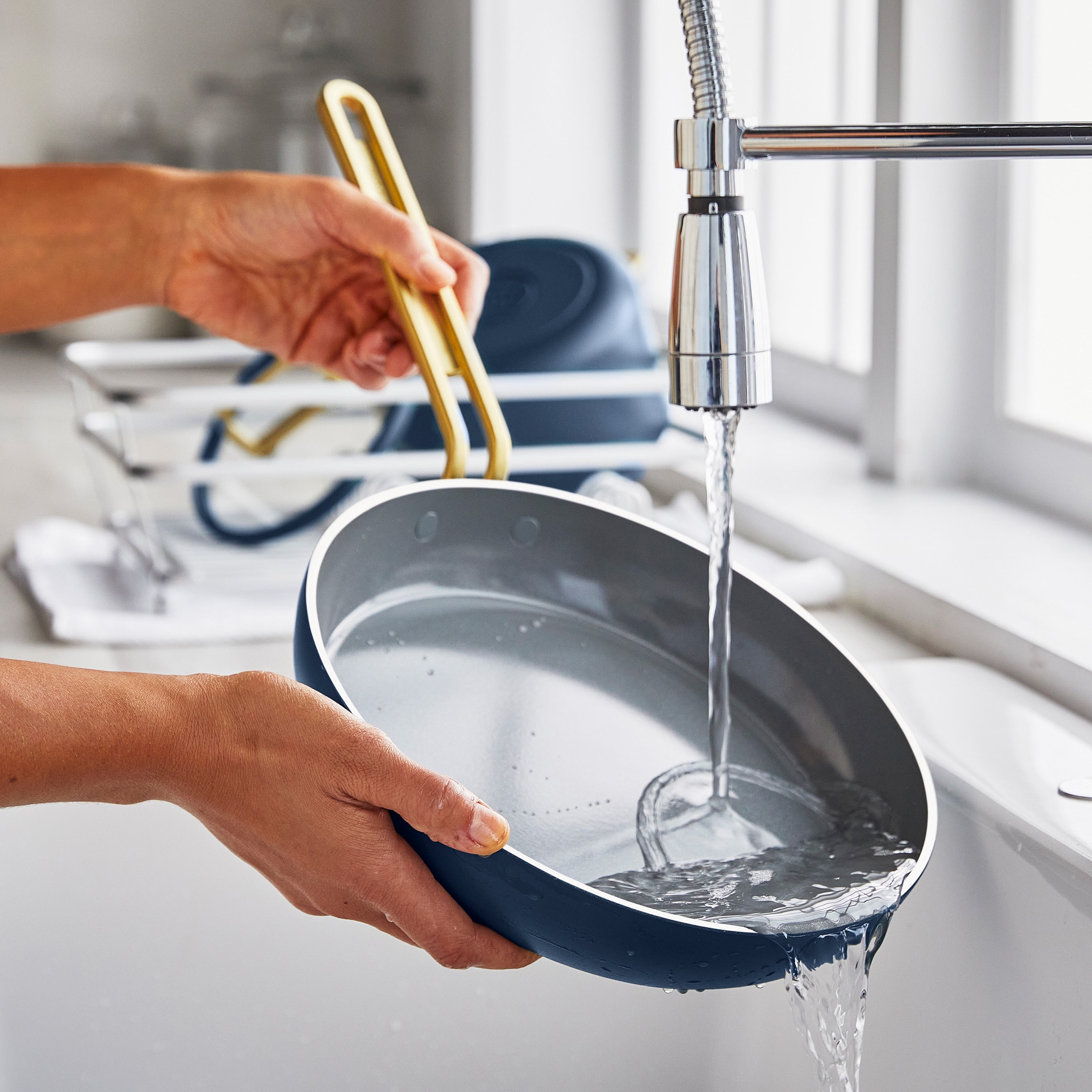 "These are some of the easiest nonstick pans to clean that I’ve ever owned. It takes minimal swipes with the soft side of my sponge to get any food off of the surface."