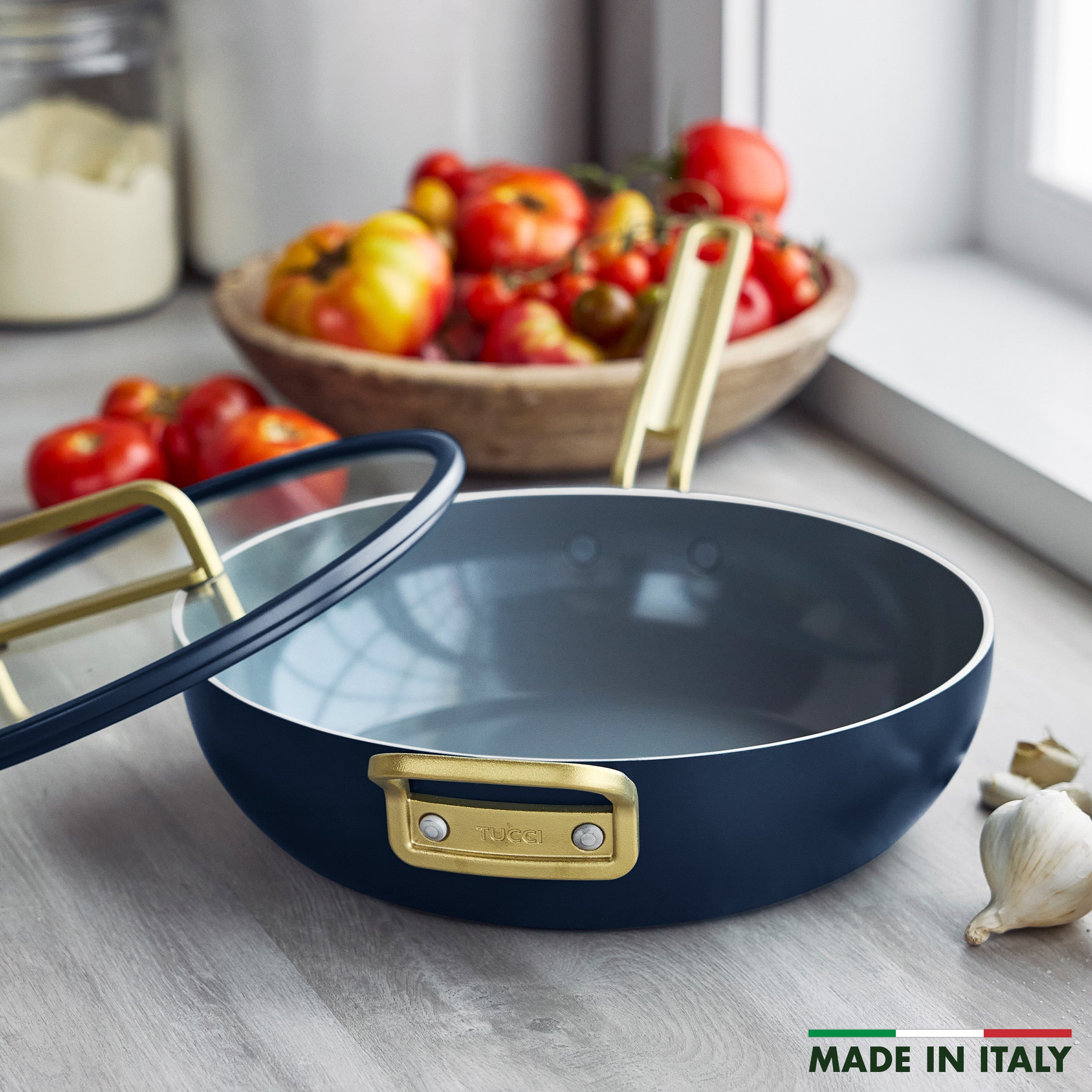 The streamlined version of Stanley Tucci's signature pan, this 4.5-quart design is the perfect way to take on big meals. Ideal for crafting family meals or finishing pasta, this pan has a large cooking surface that’s perfect for cooking big cuts of meats, sautéing veggies, and everything in between.