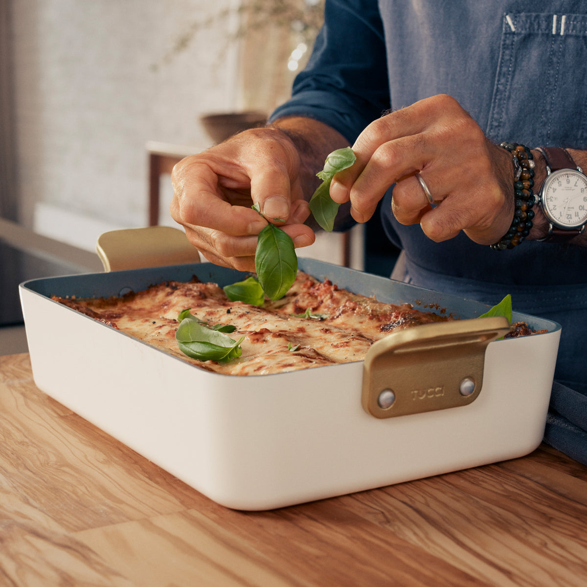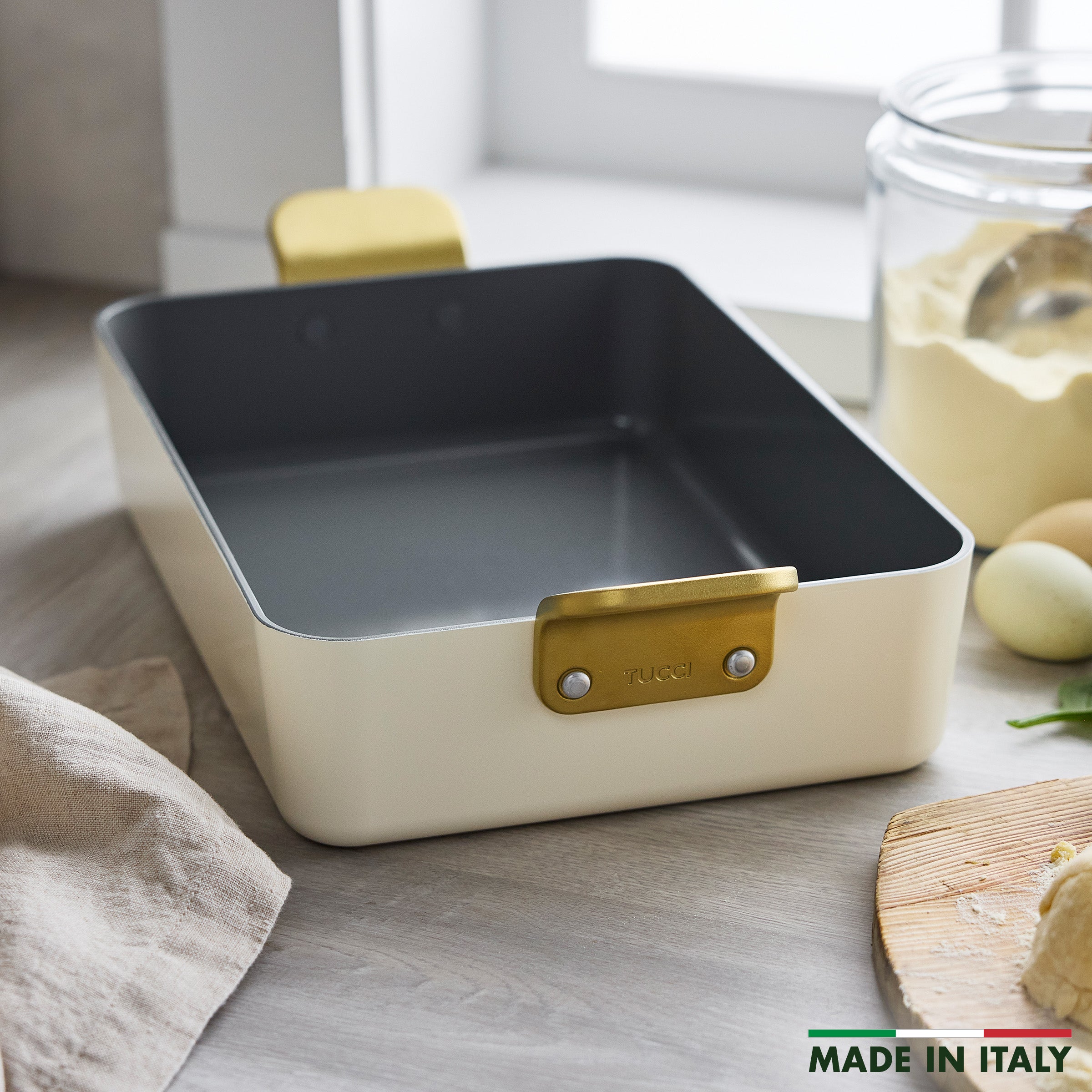 Crafted in our state-of-the-art factory in Brescia, this lasagna pan brings traditional flavors to life.