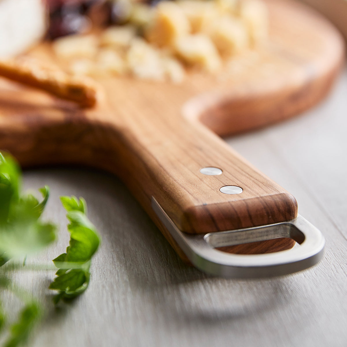 The riveted stainless steel loop is a nod to Italian design traditions and is perfect for display, storage, and easy handling