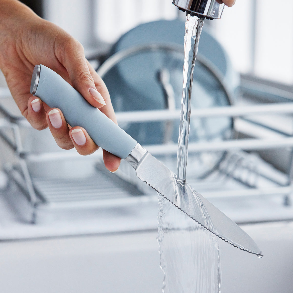 Our knives are dishwasher safe, but we recommend hand washing. Why? It will maximize the time your knives are at peak performance.
